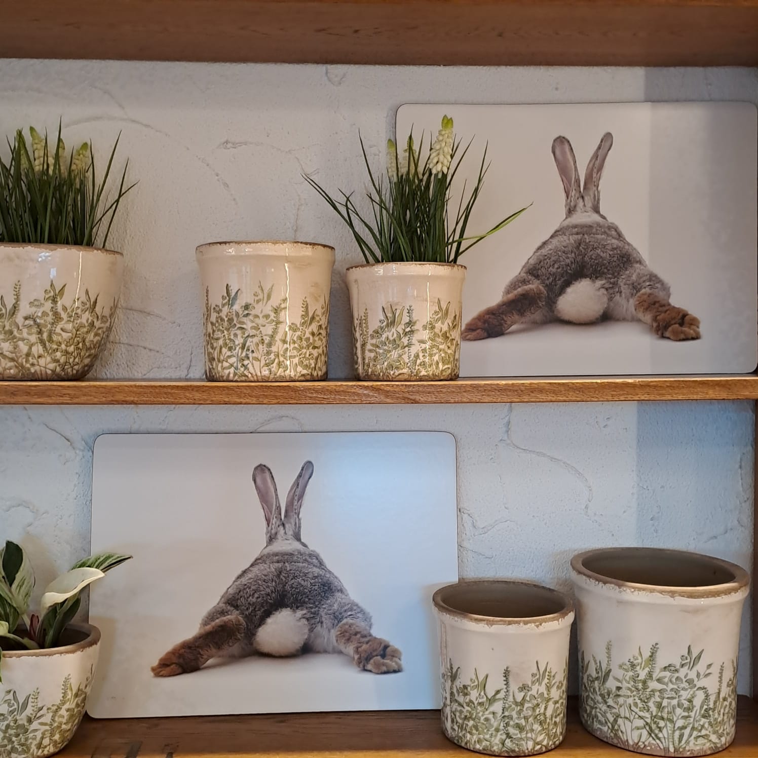 Ob niedliche Hasenfiguren, handgefertigte Kränze, dekorative Ostereier oder stilvolle Arrangements aus Keramik und Holz – unsere aktuellen Deko-Highlights bringen Wärme und Leichtigkeit in Ihr Zuhause. Besonders im Trend liegen natürliche Farbtöne kombiniert mit frischem Grün und zarten Blüten.